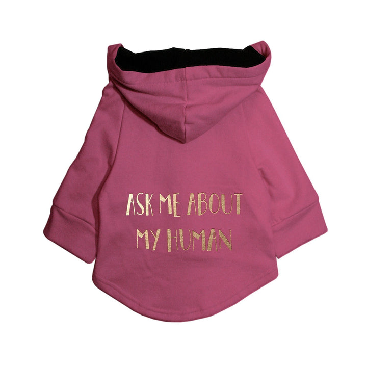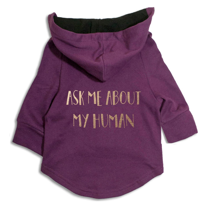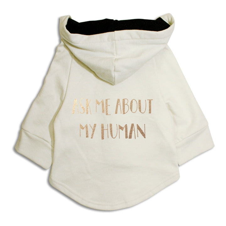 ● "Ask Me About My Human Dog Hoodie" designed for all the furballs who love to flaunt their Hoomans!