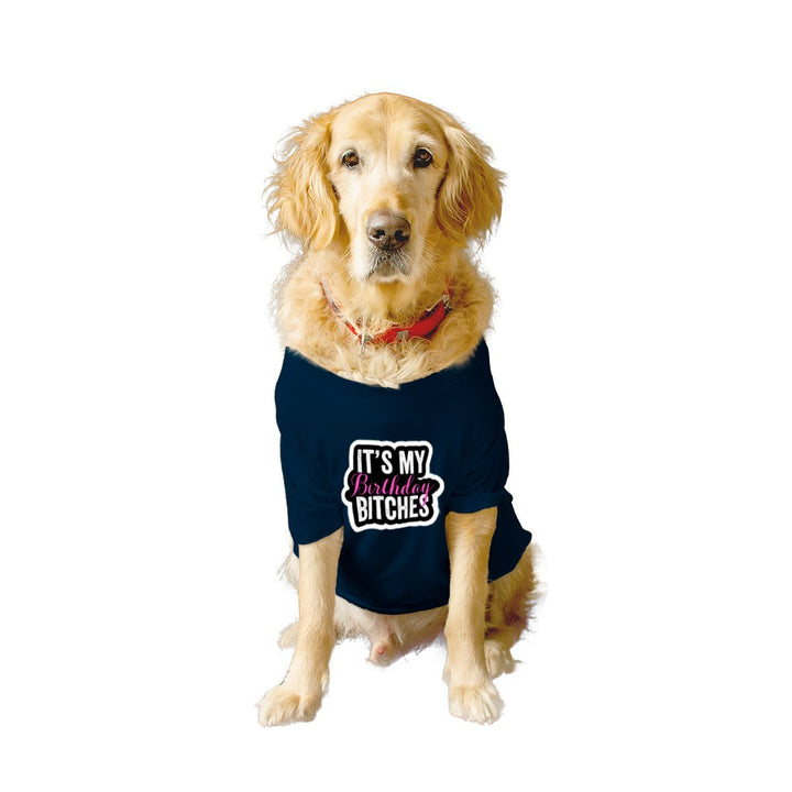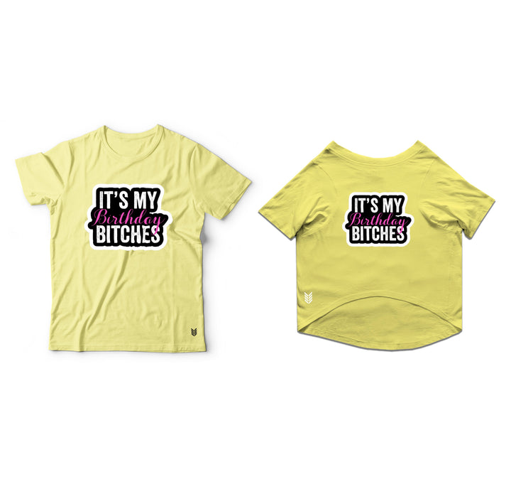 Ruse Twinning Basic Crew Neck "It's My Birthday Bitches" Printed Half Sleeves Dog and Unisex Pet Parent Tees Set