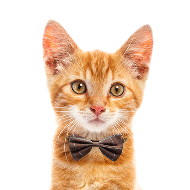 "Chocolate Waffle Check" Upcycled Cat Bow Tie